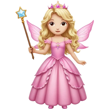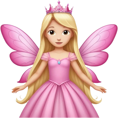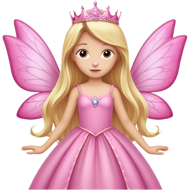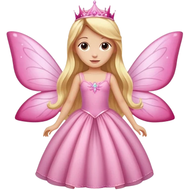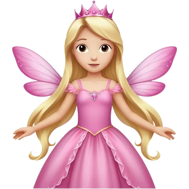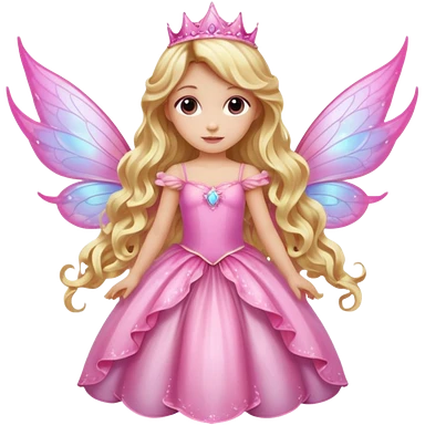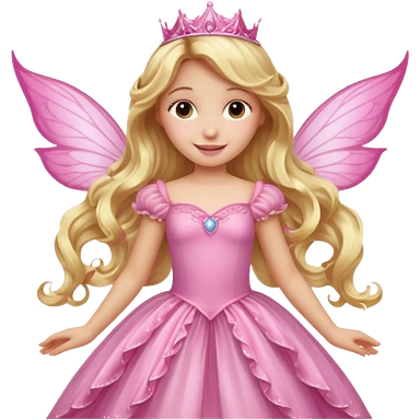 Detailed long pink princess dress, long blonde wavy hair, pink fairy wings emoji