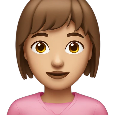 a brunette wavy hair girl with blue eyes in a pink fringe fur coat emoji