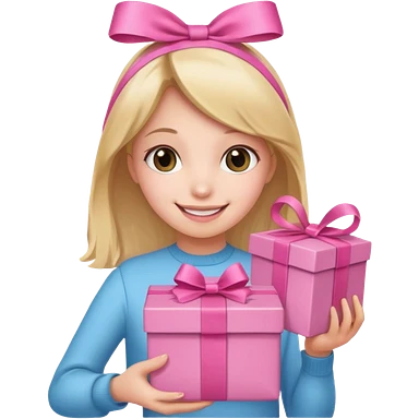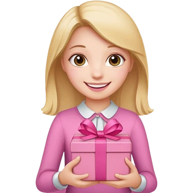 influencer promoting a pink gift box in her arms and thumb up emoji