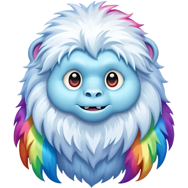 A fluffy, white creature resembling a yeti stands upright, featuring a round body and long, shaggy arms. Its face is smooth with a simple, flat mouth and no visible eyes. The hands and feet are pink with claw-like digits, and the creature has a whimsical, cartoonish appearance emoji