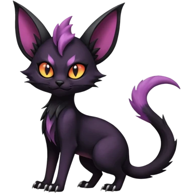 Dark gloomy gothic Black edgy cute Noivern-Noibat-Purloin-Torracat-Lykoi-Caracal-cat-Fakemon-fusion-hybrid-creature with an imp tail emoji