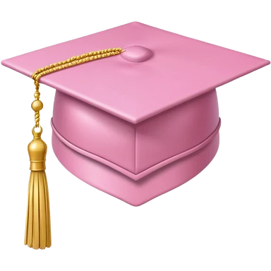 Pastel pink graduation cap with satin texture, gold tassel, elegant minimal style emoji