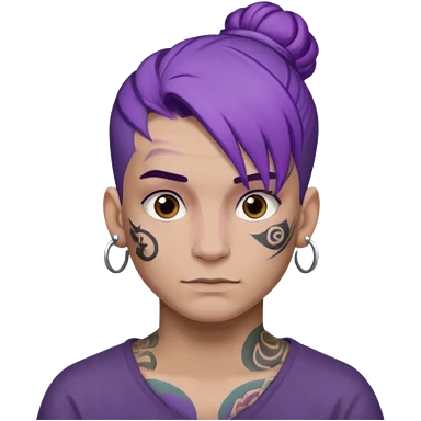 pink hair single bun and lots of face tattoo girl emoji | AI Emoji Generator