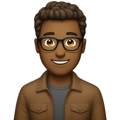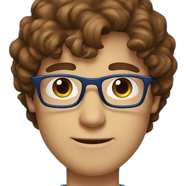 a dark-haired guy with hair to his earlobes, square glasses, brown eyes emoji