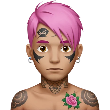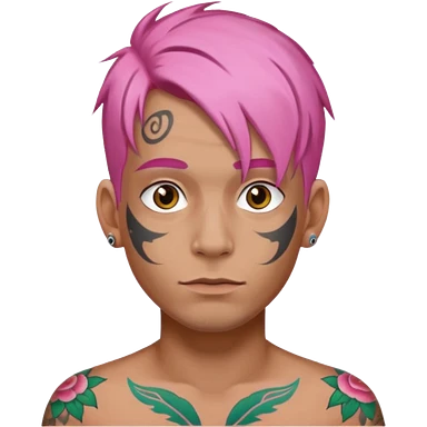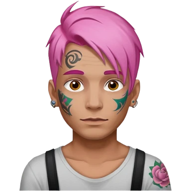pink haired man and face tattoos and hat emoji | AI Emoji Generator