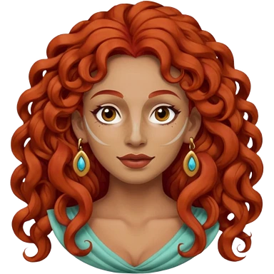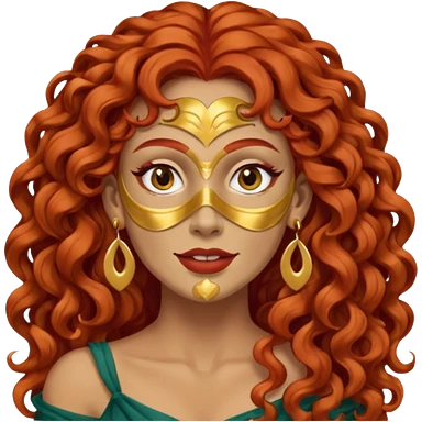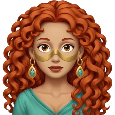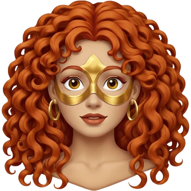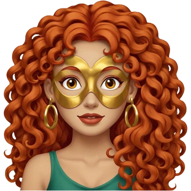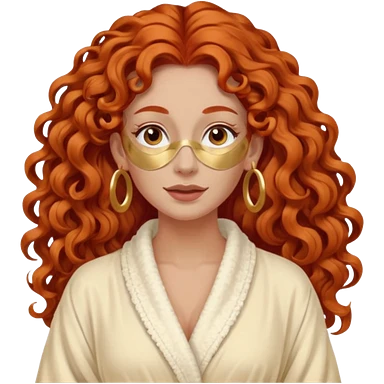 red haired very long curly haired woman with full face clay mask and big earrings emoji