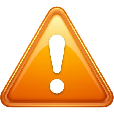 Glossy orange warning triangle with a white exclamation mark, 3D glass texture, vibrant safety orange, soft shadows, glowing halo around emoji