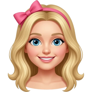 Pink happy face with a bow blonde long hair emoji | AI Emoji Generator
