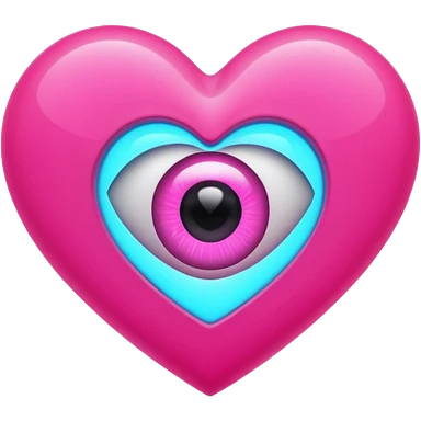 A pink neon heart with a eye in the center emoji
