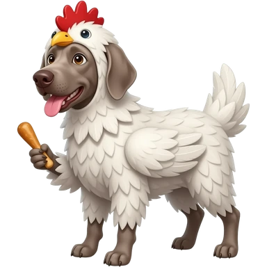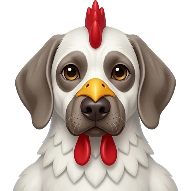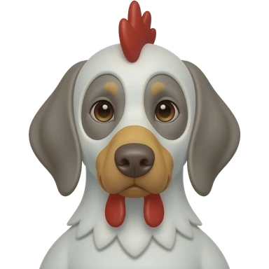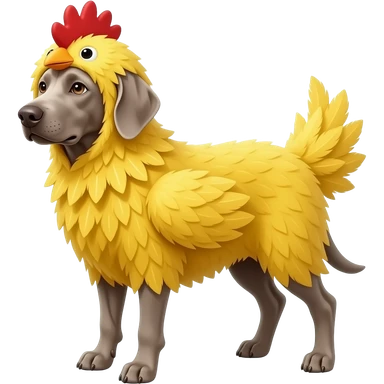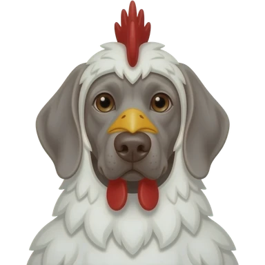Gray Weimeraner dressed as a chicken emoji