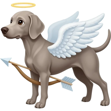 Weimeraner with Cupid wings and arrow emoji