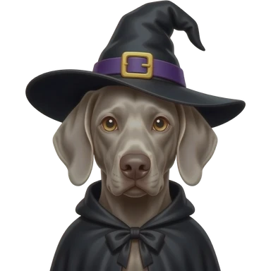 Gray Weimeraner dressed as a witch emoji
