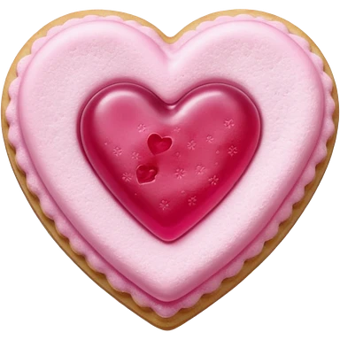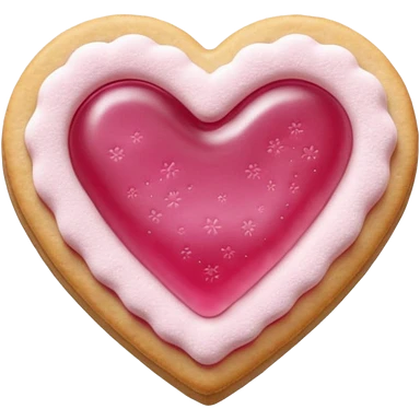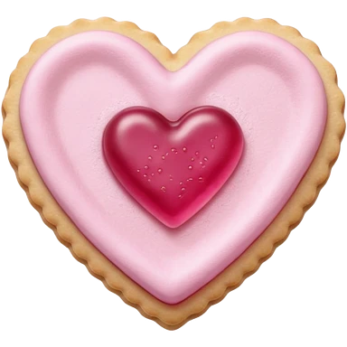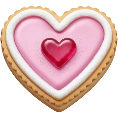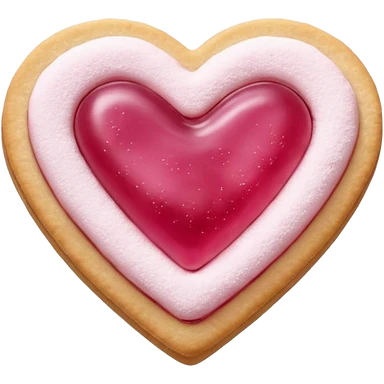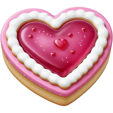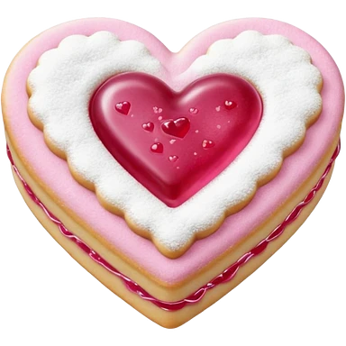 Realistic shortbread cookie in the shape of a heart with pink jelly middle filling and sprinkled powder sugar on top. emoji