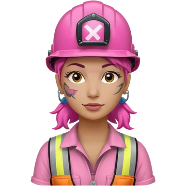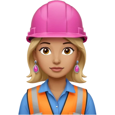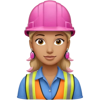 blonde hair blue eyed girl electrician with pink helmet emoji
