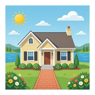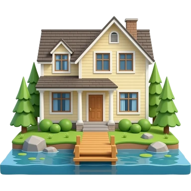 Lakeside house front view and brick path emoji 3d png no background emoji