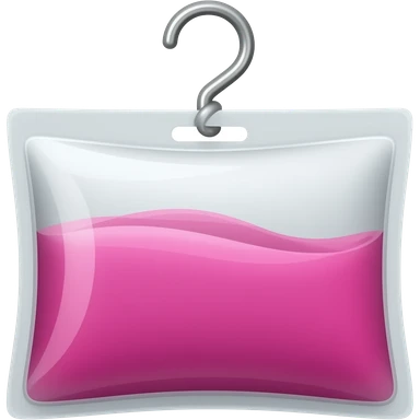 rectangle IV bag halfway full of bright pink liquid on hook with line emoji