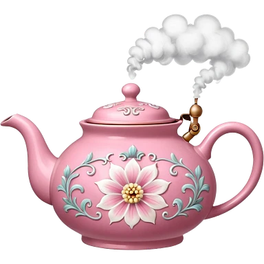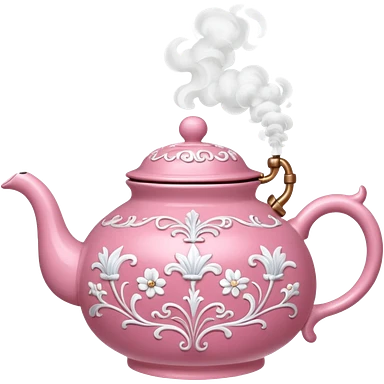 Pink steaming and boiling tea pot with smoke emoji