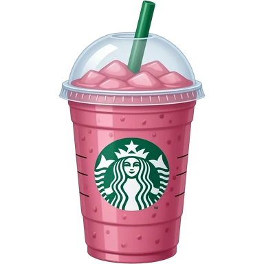 A Starbucks cup with a green straw and a pink lemonade inside the cup emoji