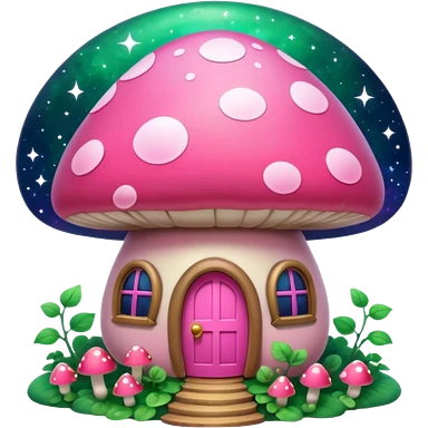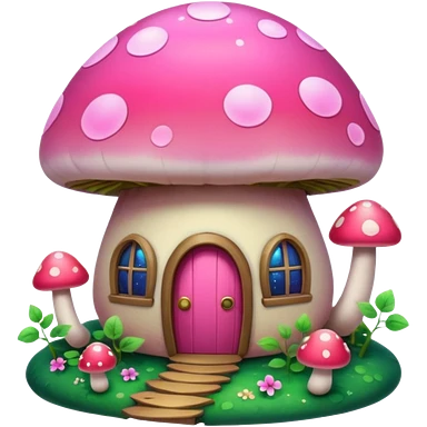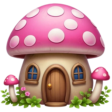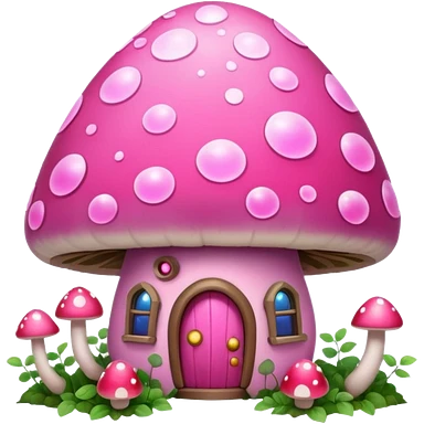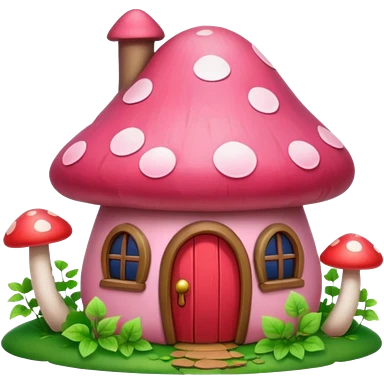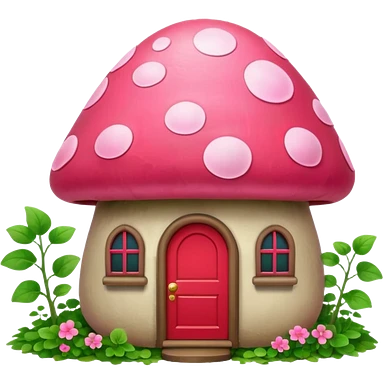 Pink little mushroom house covered in vines emoji | AI Emoji Generator