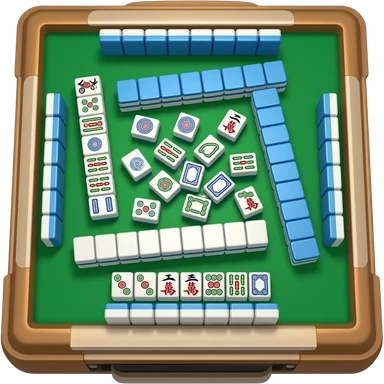 A close-up of a mahjong table, with mahjong tiles scattered haphazardly emoji