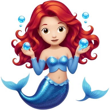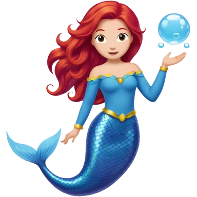 Bubbles the Mermaid from The Wiggles with light skin, long red hair, icy blue outfit emoji