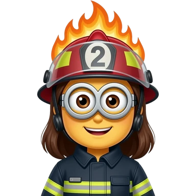 female minion firefighter Controlled Burn on helmet emoji