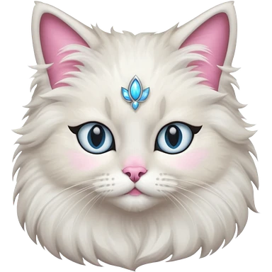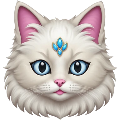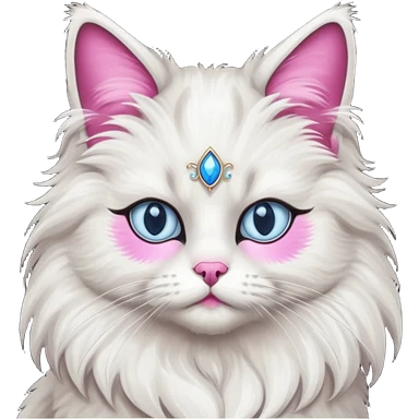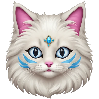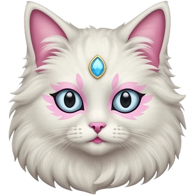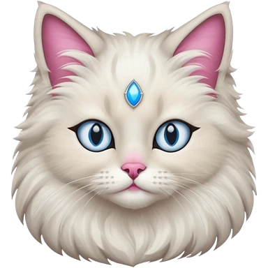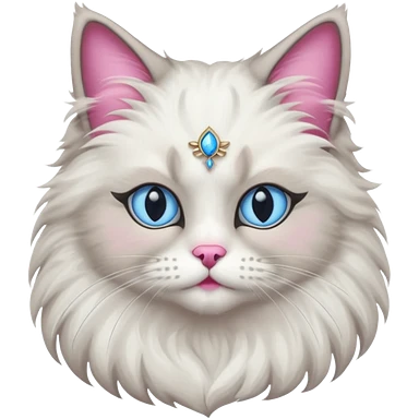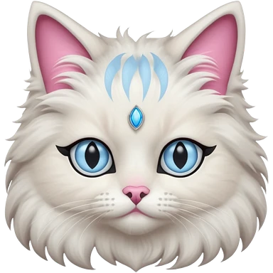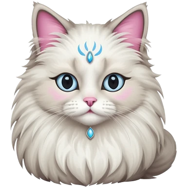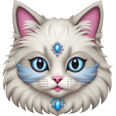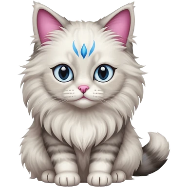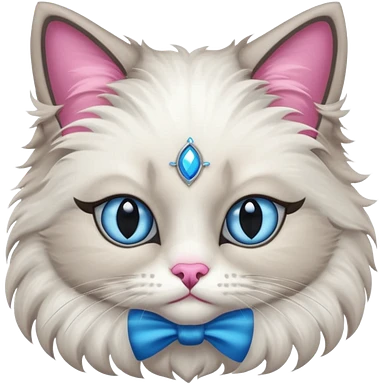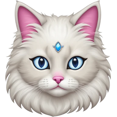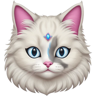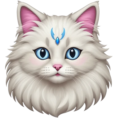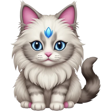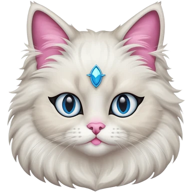 Neva masquerade cat, very fluffy, gray and white, blue eyes and pink nose emoji