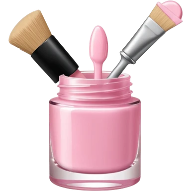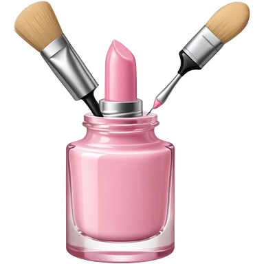 Female hairdresser with headband, wearing red apron, holding pink nail polish bottle and scissors, beauty salon employee emoji