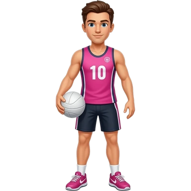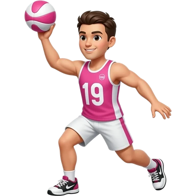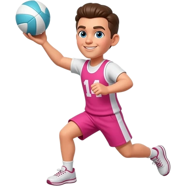 male netball player playing netball dressed in pink white ball emoji