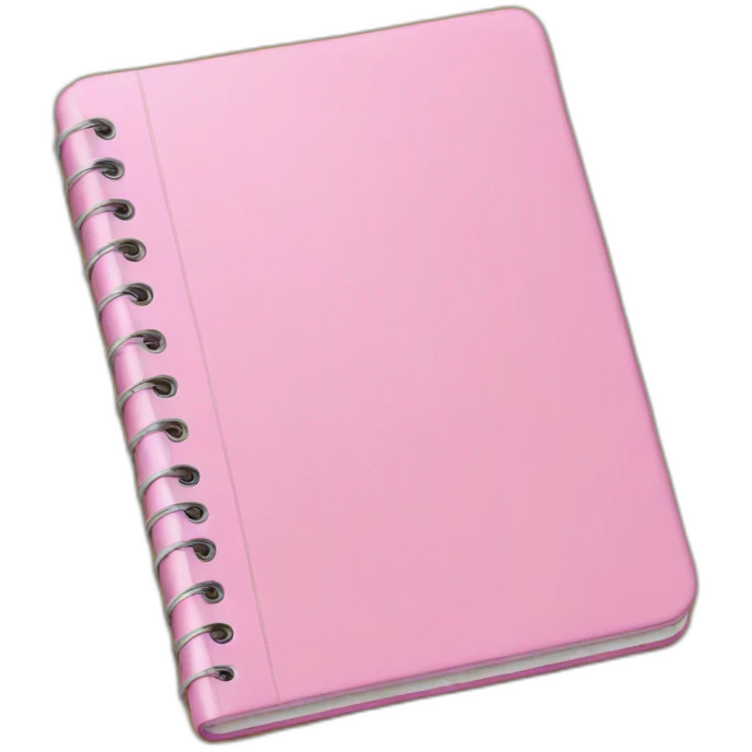 Pastel pink notebook, soft shadows, cute white details, glossy finish emoji