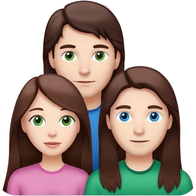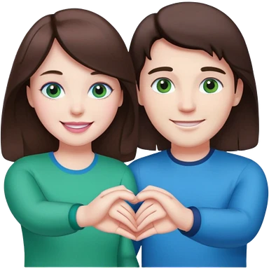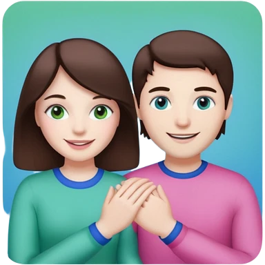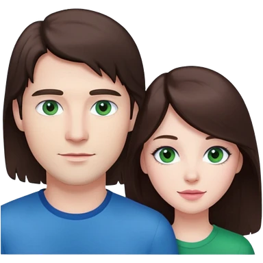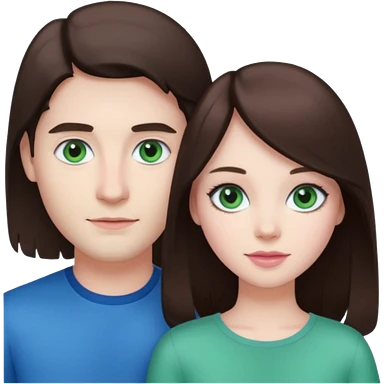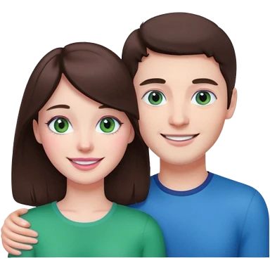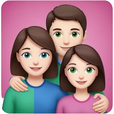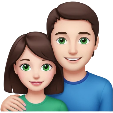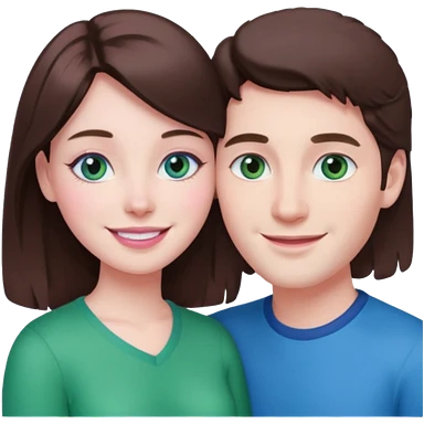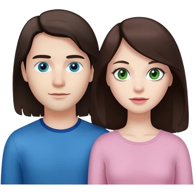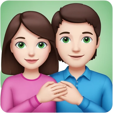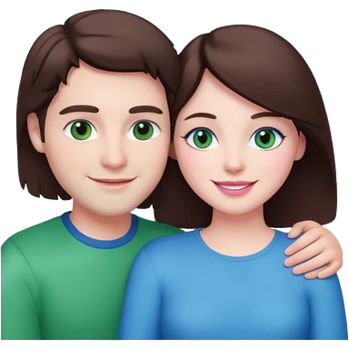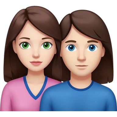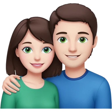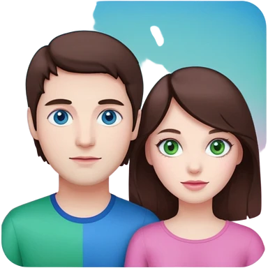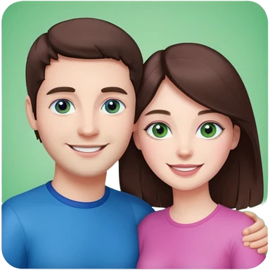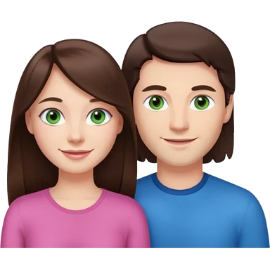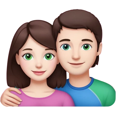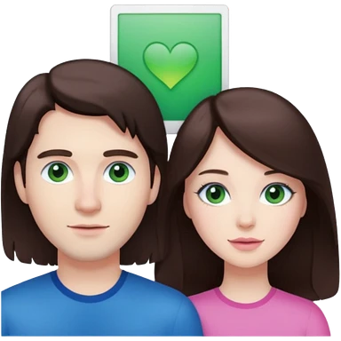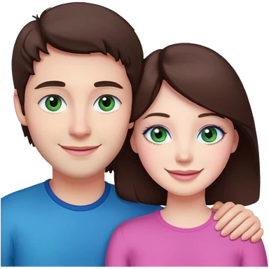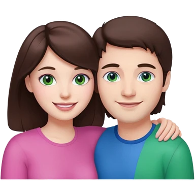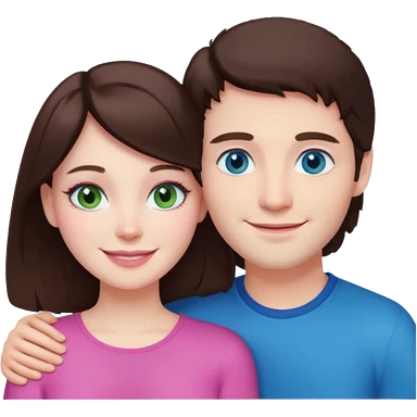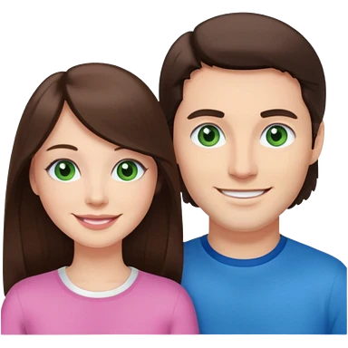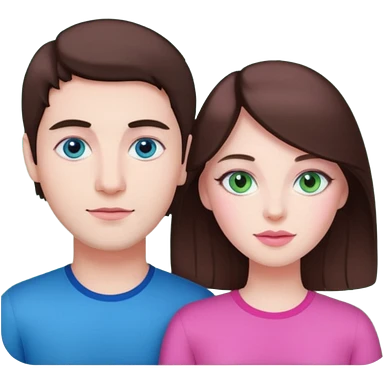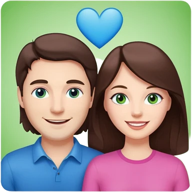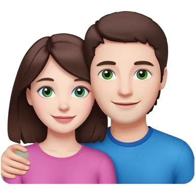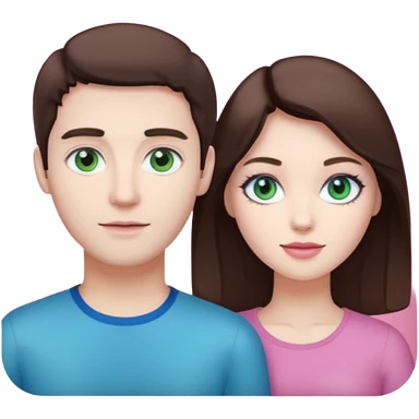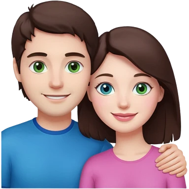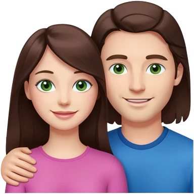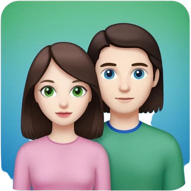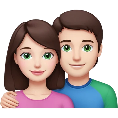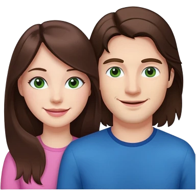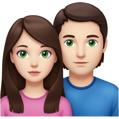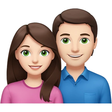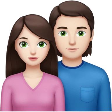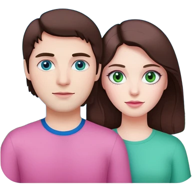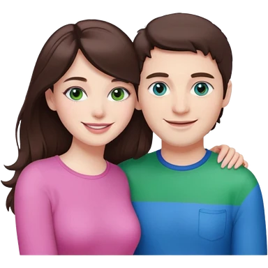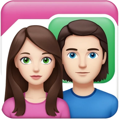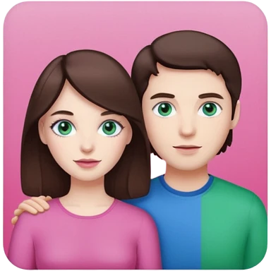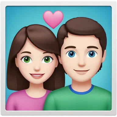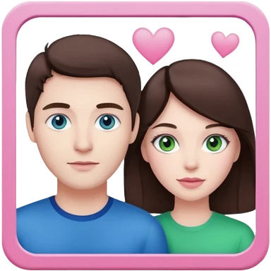 pink polaroid photo of a couple thats white with long brunette hair blue eyes and a white guy with short brunette hair and green eyes emoji