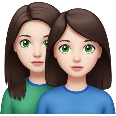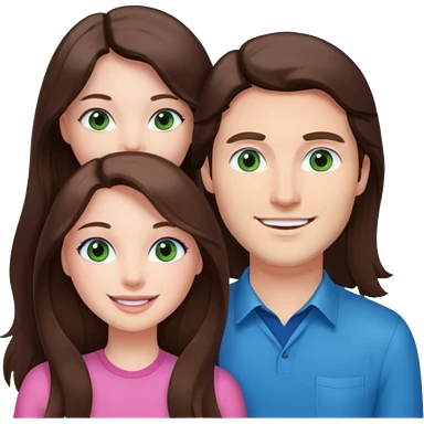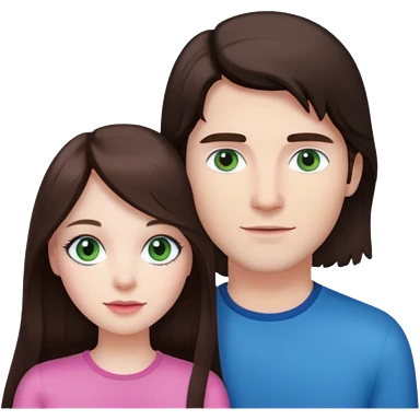 pink polaroid photo of a couple thats white with long brunette hair blue eyes and a white guy with brunette hair and green eyes emoji