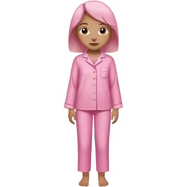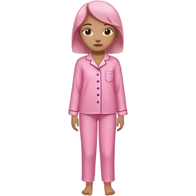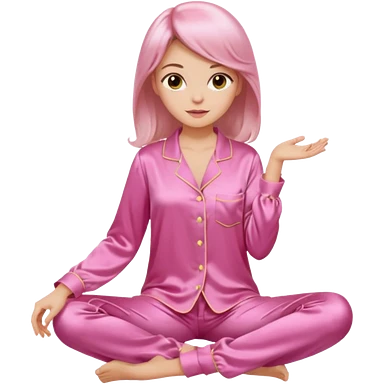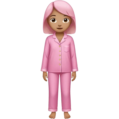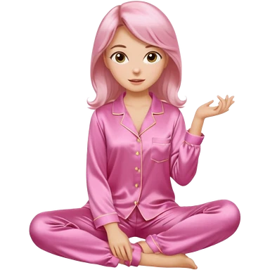 Brunette long hair lady in her soft silk pink pijamas emoji