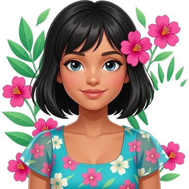 A tropical human girl hot сидеть смотреть turquoise and vivid hot pink? Lime green floral line art on a sleek black🧎🏽♀️➡️ emoji