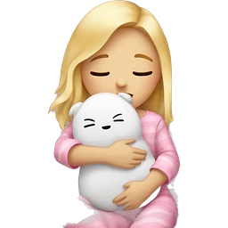 blonde girl wearing a pink pjs being very sleepy and hugging a pillow emoji