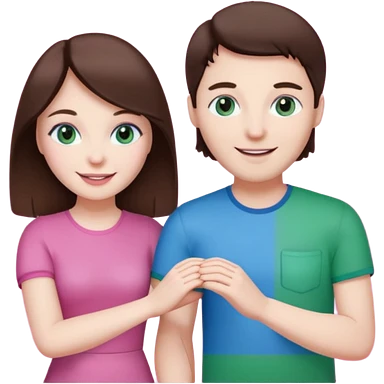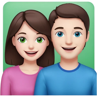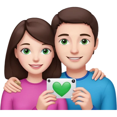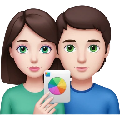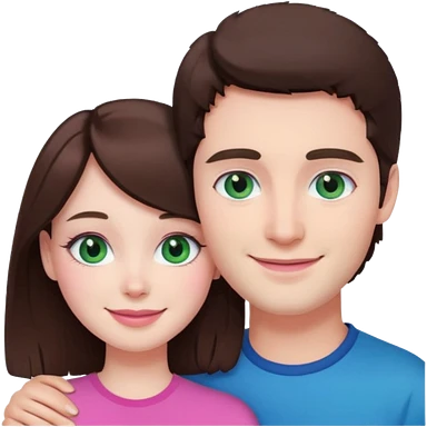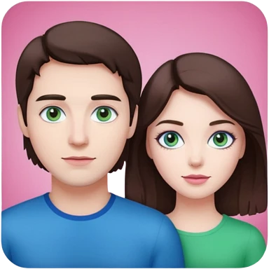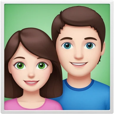 pink polaroid photo of a couple thats white with brunette hair blue and green eyes emoji | AI Emoji Generator