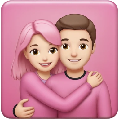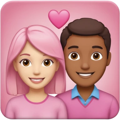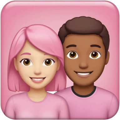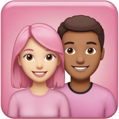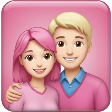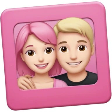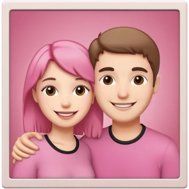 pink polaroid photo of a couple thats white with long brunette hair blue eyes and a white guy with short brunette hair and green eyes emoji | AI Emoji Generator