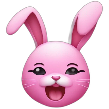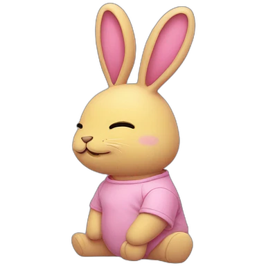 rabbit pink closed eyes, wears teeshirt yellow emoji