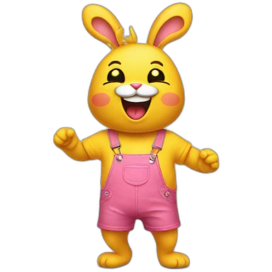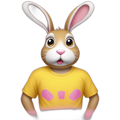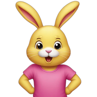 confused pink rabbit in yellow teeshirt raising arms emoji