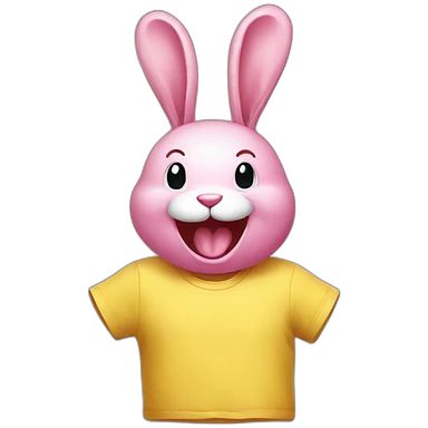 Pink rabbit wearing yellow tee shirt, laughing emoji