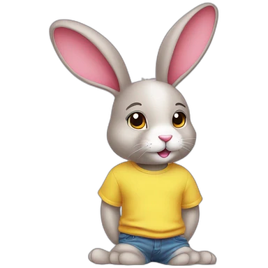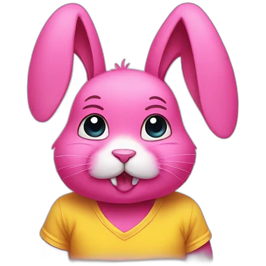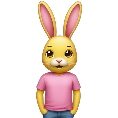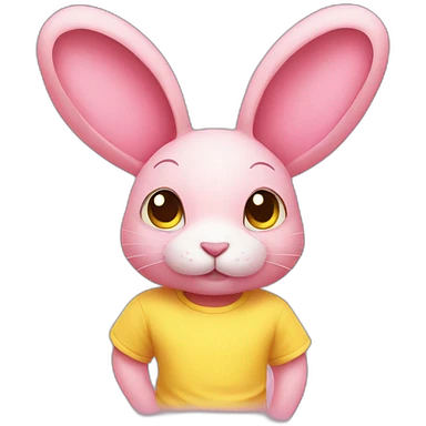 Pink rabbit frowning, wears yellow teeshirt emoji