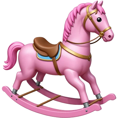 Light pink rocking horse toy for kids with a white saddle and white leg emoji