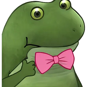 pink face with two pink bows crossing it’s eyes and doing a kissy face emoji