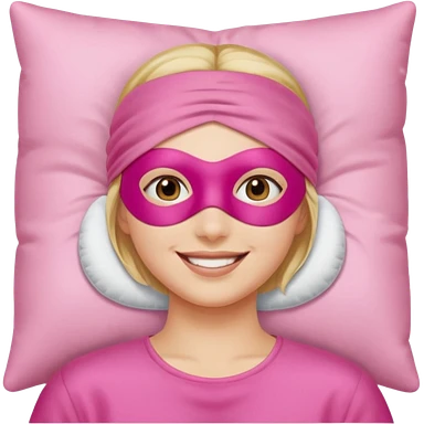blond girl sleeping and and wearing a pink sleep mask emoji