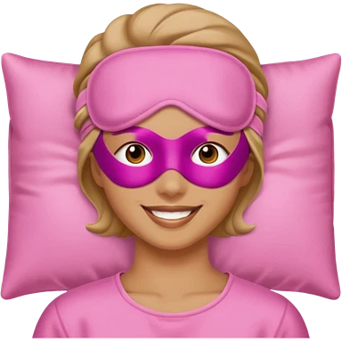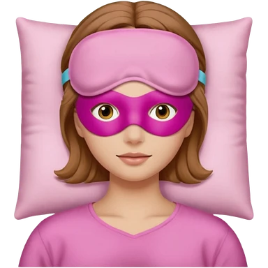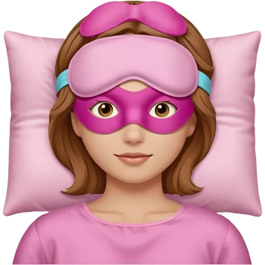 A brunette girl sleeping and wearing a pink sleep mask emoji