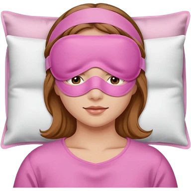 A brunette girl white skin sleeping and wearing a pink sleep mask emoji