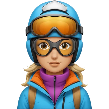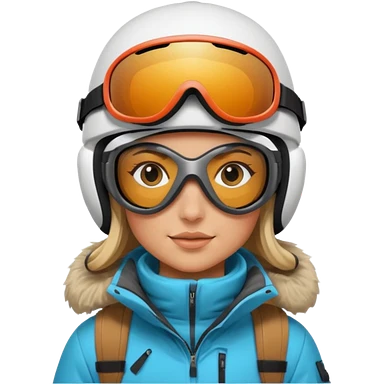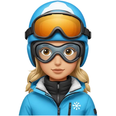 Blonde cute woman snowboarding with pastel colourd jacket, black pants and white helmet and pink googles emoji