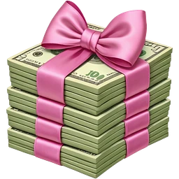 create a stack of money with glitter and a pink bow wrapped around it emoji