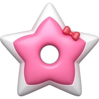 Pink star-shaped shuriken emoji, bright pink with white borders, big circular hole in center, small red bow on side, cute 3D emoji style, transparent background, front view, isolated emoji | AI Emoji Generator