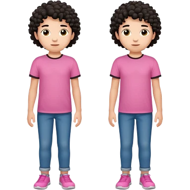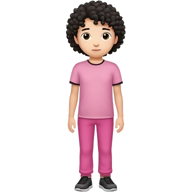 Kid boy wearing pink T-shirt, black curly hair, full body emoji